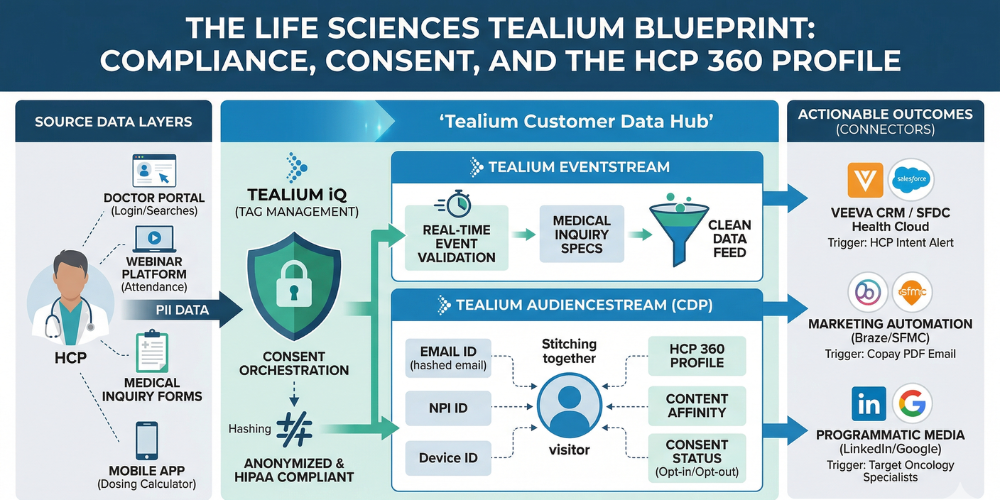 For the Life Sciences sector—encompassing pharmaceuticals, biotech, and medical device companies—the Tealium implementation moves beyond simple marketing. It becomes a critical tool for HCP (Healthcare Professional) engagement, patient privacy (HIPAA/GDPR), and omnichannel clinical journeys.